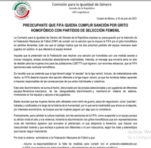 El Senado de la República expresó su rechazo a la posibilidad de que la Federación Mexicana de Futbol (FMF) utilice...