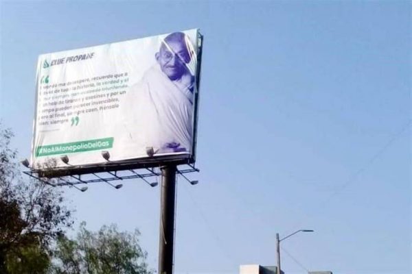 Un espectacular de 10 metros con imágenes y frases de Benito Juárez y Mahatma Gandhi, fue retirado por el gobierno...