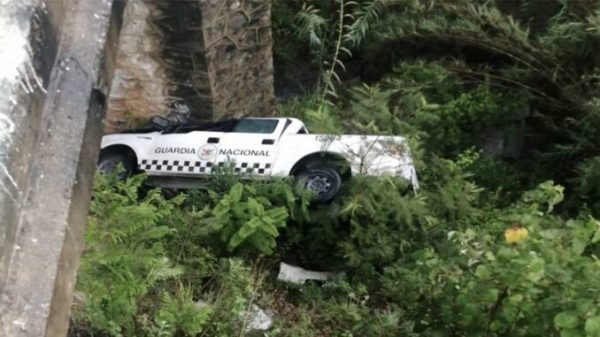 OAXACA, Oax. Un elemento de la Guardia Nacional murió al volcar la patrulla en la que viajaba. Otro más resultó...