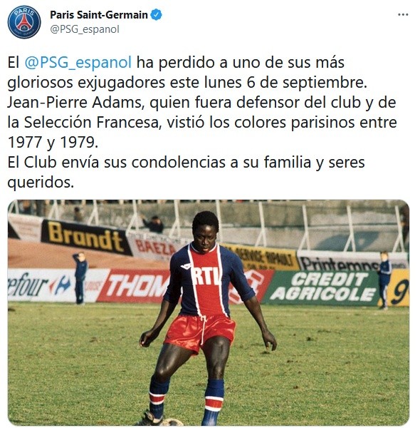 El defensa francés Jean-Pierre Adams, que entró en un coma profundo en 1982 por un error en la dosis de...