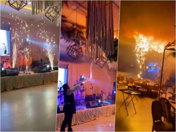 Una boda que se estaba celebrando en un salón de fiestas terminó en un fuerte incendio por el uso de...