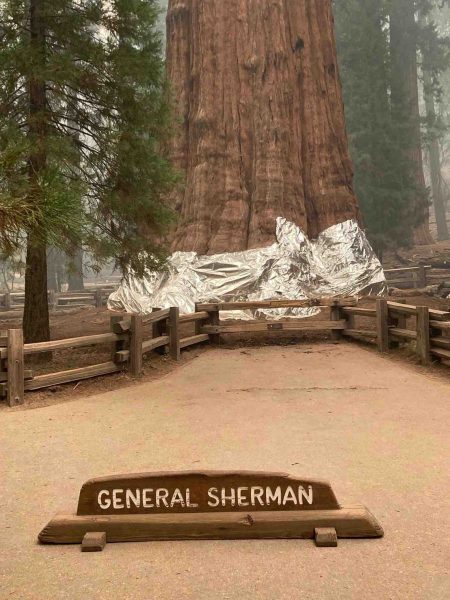 Los bomberos de California están usando mantas para proteger las icónicas secuoyas -incluido el árbol más grande del mundo- de...
