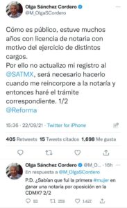 La senadora Olga Sánchez Cordero aclaró el estatus de la notaría que posee en la Ciudad de México, luego de...