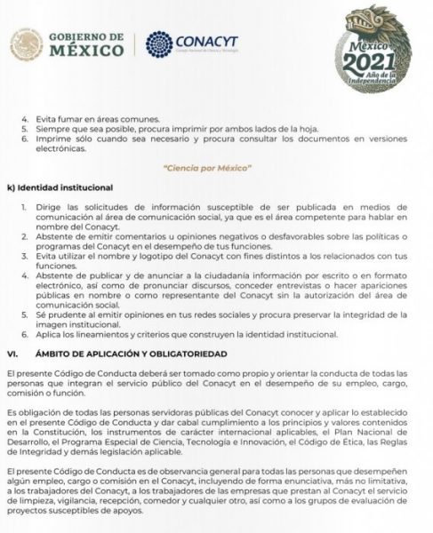 El Consejo Nacional de Ciencia y Tecnología (Conacyt) emitió un nuevo código de ética para sus empleados, beneficiarios, prestadores de...