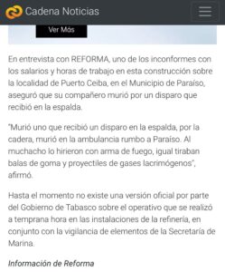 Tras los enfrentamientos que se suscitaron este miércoles en la construcción de la refinería de Dos Bocas, en Paraíso, Tabasco;...
