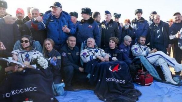 RUSIA.- El equipo de filmación ruso que pasó 12 días a bordo de la Estación Espacial Internacional (ISS, por sus siglas en...