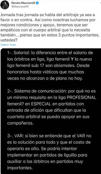 La portera del América, Renata Masciarelli, pidió que la Federación Mexicana de Futbol (FMF) atienda de mejor manera al arbitraje...