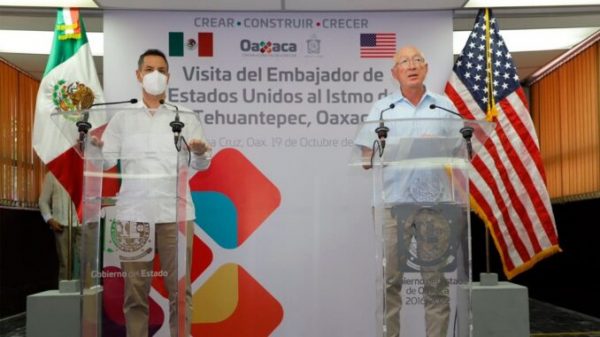 Junto al Embajador de los Estados Unidos de Norteamérica en México, Excmo. Sr. Kenneth Lee Salazar, el gobernador Alejandro Murat...