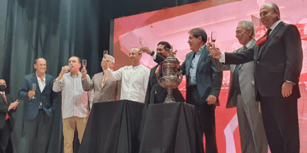 Llegó el brindis por el título. Atlas conservaba una legendaria botella de whisky en sus vitrinas desde hace 67 años...