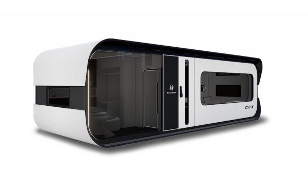 La pequeña y moderna casa prefabricada C2X de Nestron incorpora todos los sistemas de fontanería, electricidad y otros sistemas inteligentes...