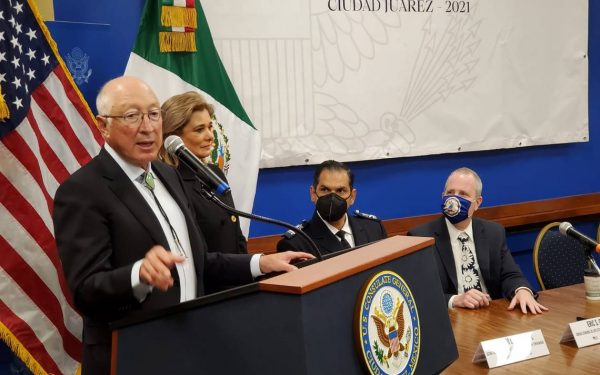 La gobernadora de Chihuahua, María Eugenia Campos, y el embajador de Estados Unidos en México, Ken Salazar, firmaron la carta...