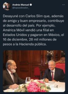 El presidente Andrés Manuel López Obrador se reunió con el empresario Carlos Slim, quien le informó que una transacción comercial...