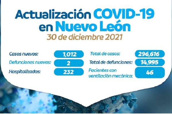 Este fin de año Nuevo León contagios por Covid pasaron de 561 a mil 12 personas. Hubo dos decesos y...
