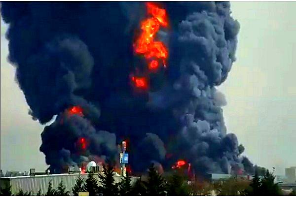 Incendio en fábrica de solventes en Lerma, Estado de México. Desalojan predios aledaños. Presencia de grupo de rescate aéreo Relámpagos...