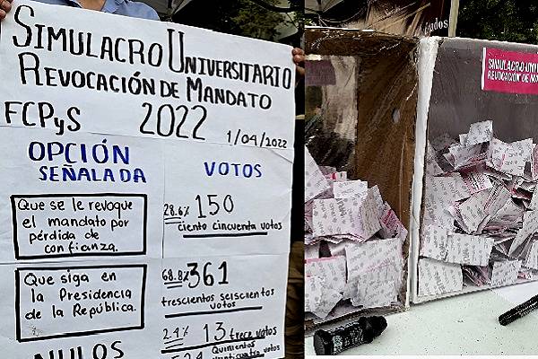 En Simulacro Universitario de Revocación de Mandato, realizado en la Facultad de Ciencias Políticas de la UNAM, solo 28% por...