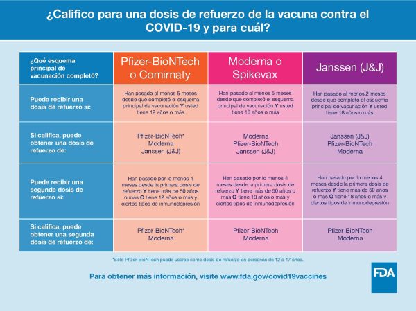 English Utilice este tabla para averiguar si califica para una dosis de refuerzo de la vacuna contra el COVID-19 y para cuál....