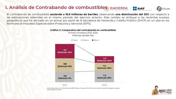 Entre enero y marzo de 2022, ingresaron a México 16.9 millones de barriles de combustibles de contrabando, reveló este día...