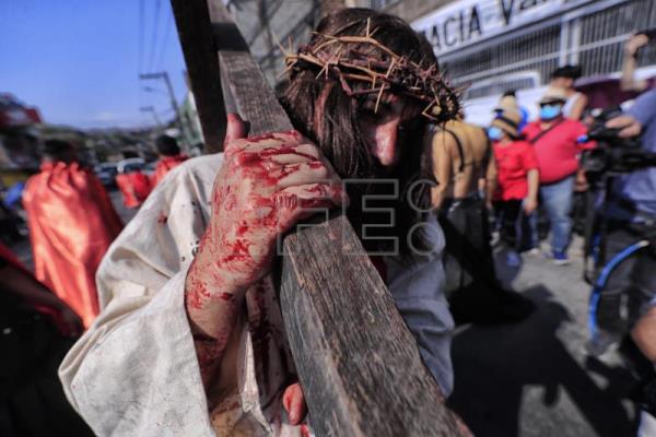 El viacrucis del Viernes Santo en Honduras se conmemoró con la representación del calvario de Cristo y la recreación de...