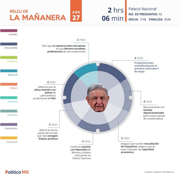 Gobierno Federal Estos son los temas de la mañanera de este miércoles Redacción Abr 27, 2022 - 11:43 Actualizado: Abr 27, 2022 - 11:57 Estos...