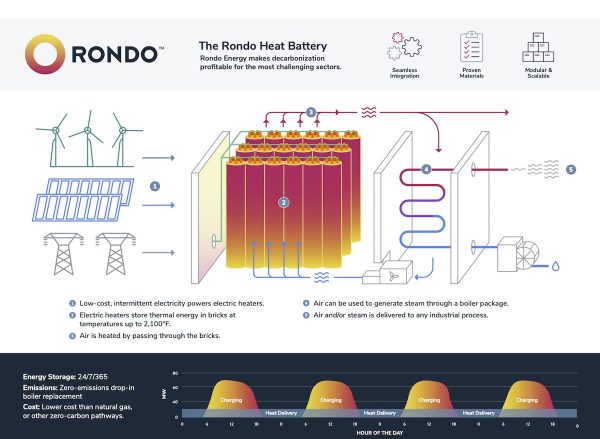 Rondo, una empresa financiada por Bill Gates, convierte la energía solar o eólica en calor. El almacenamiento de energía térmica...