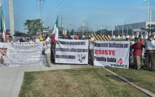 VILLAHERMOSA. Integrantes del Sindicato de Trabajadores Petroleros de la República Mexicana (STPRM) se manifestaron ayer en la refinería Olmeca por...