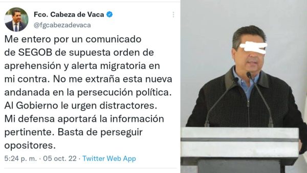 El exgobernador, García Cabeza de Vaca, respondió a través de sus redes sociales, sobre la orden de aprehensión que existe...