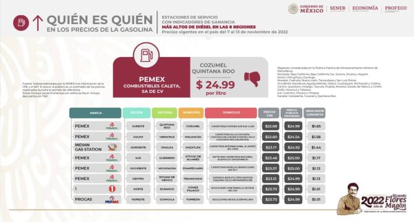El titular de la Profeco, Ricardo Sheffield presentó los precios de las gasolinas en México de entre el 11 y...