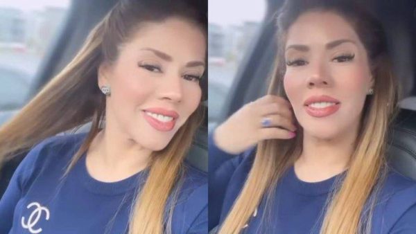 Con una sonrisa y jugando con su cabello, una media hermana de Ovidio Guzmán, escucha un corrido dedicado a su...