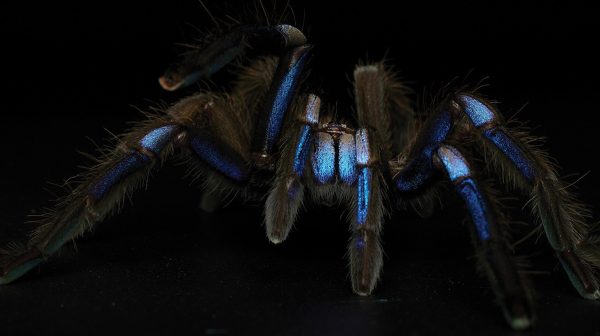 El color azul eléctrico de la tarántula descubierta se debe a una estructura de su pelo que incorpora nanoestructuras que...
