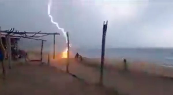 REDACCIÓN/LALUPA.MX Aquila, Mich., 19 de septiembre de 2023.- Una persona grabó el momento preciso en el que un rayo golpeó...