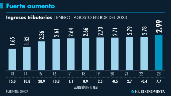 El gobierno federal recibió 2,9 billones de pesos en ingresos tributarios entre enero y agosto de 2023, lo que representó un aumento del 7,7...