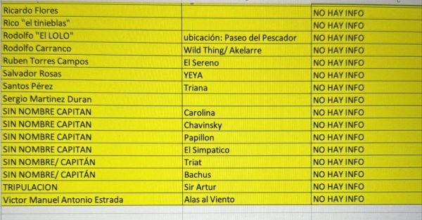 Acapulco.-Un listado con 68 nombres de personas y siete más sin identificar, son los capitanes y tripulación que trabaja en...