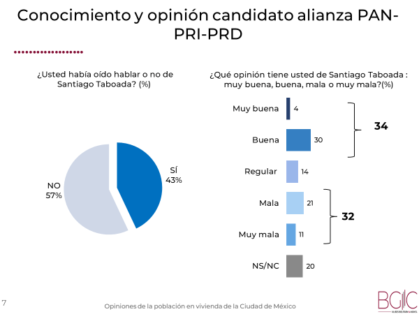 Si hoy fueran las elecciones, el 58% de los entrevistados votarían por Clara Brugada de la coalición Morena. Por Taboada...