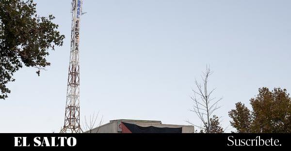 Varios activistas del movimiento de solidaridad con Palestina han desplegado este 25 de noviembre a las 7h dos pancartas frente...