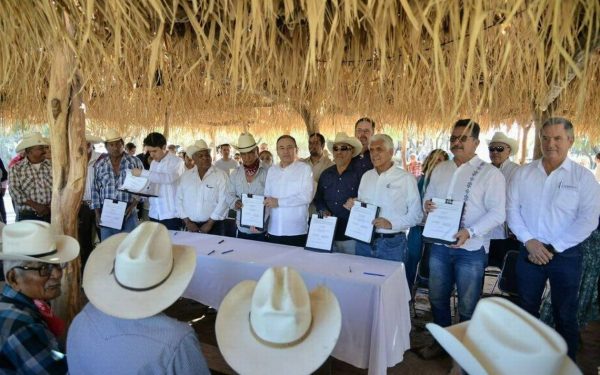Autoridades estatales e integrantes de la etnia firmaron el acuerdo con el cual se transfiere el título del Distrito de...