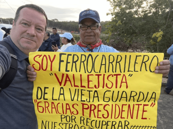 Empresarios, funcionarios y gobernadores con AMLO en el recorrido inaugural del primer tramo del Tren Maya que correrá de Campeche-Cancún...
