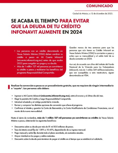 Escrito en DINERO el 16/12/2023 · 06:01 hs Si eres derechohabiente el Infonavit y tienes un crédito hipotecario, tienes hasta...
