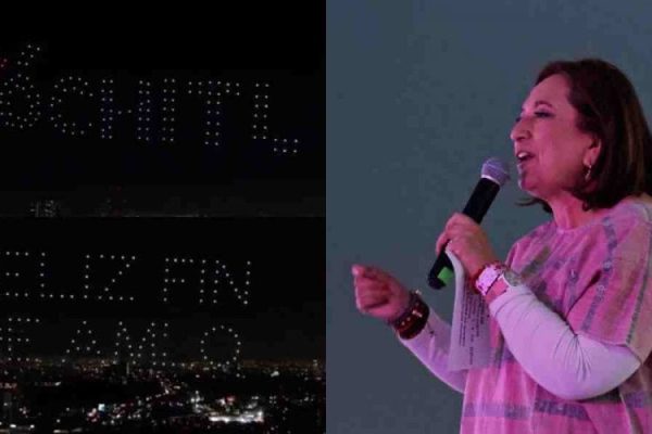 Xóchitl Gálvez Ruiz, precandidata presidencial de Fuerza y Corazón por México, hizo volar unos drones en la Ciudad de México,...