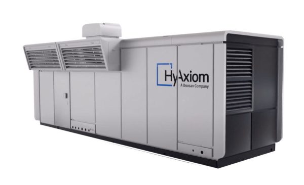 Los visitantes también pueden echar un vistazo al electrolizador de membrana de intercambio de protones (PEM) de HyAxiom, que se...