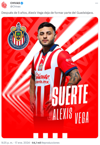 Las Chivas se han desprendido oficialmente de Alexis Vega, delantero que a partir de ahora pasará a formar parte de...