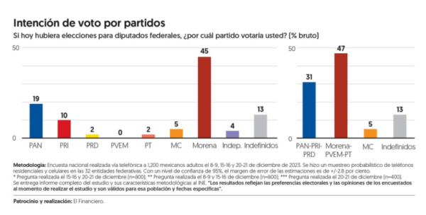 Sheinbaum arrasa. Derechista Gálvez solo alcanza 30% de intención de voto. En diputados Morena tiene 45% de intención de voto,...