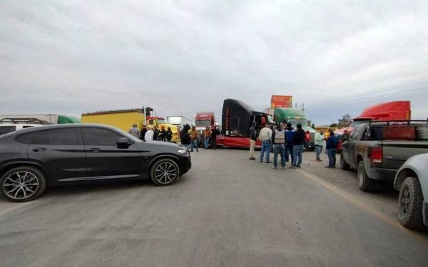 En un acto de protesta por la inseguridad que ha denunciado el gremio de transportistas, y ante la muerte de...
