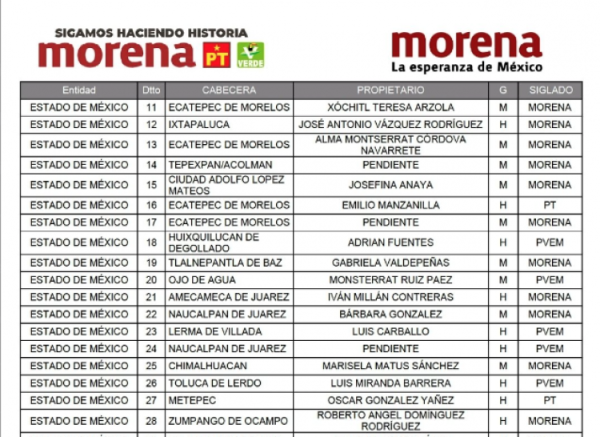Morena incluyó en las listas de las candidaturas de la alianza Sigamos Haciendo Historia en la Cámara de Diputados a...