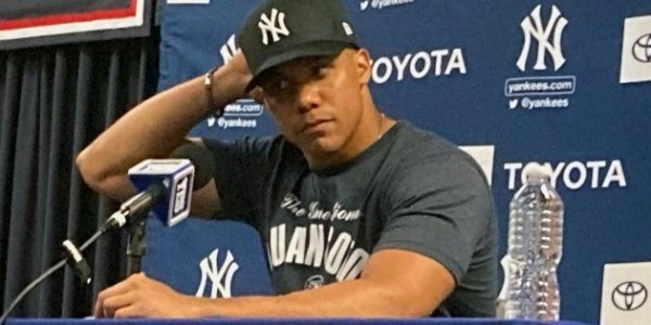El jardinero dominicano Juan Soto se presentó ayer al campo de entrenamiento de los Yankees de Nueva York y de...
