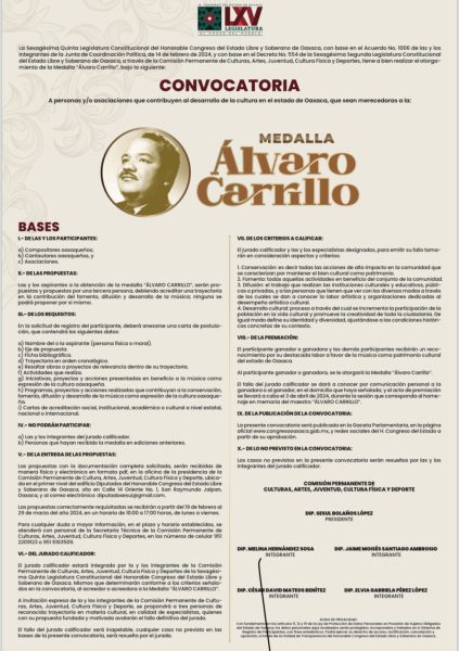 • Se reconocerá a impulsores de la música en Oaxaca San Raymundo Jalpan, Oax. 19 de febrero de 2024.- La...