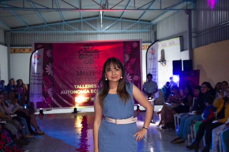 Las alumnas realizaron una pasarela para modelar los diseños confeccionados por ellas mismas; las maquillaron alumnas que concluyeron el curso de maquillaje. El evento se llevó a cabo en la comunidad de San Isidro Miranda, donde se entregaron constancias a las participantes.