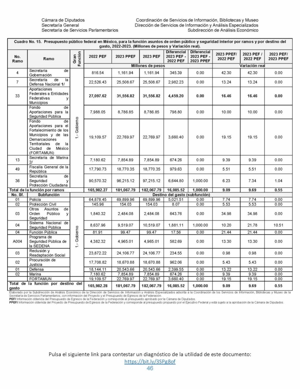 Los dos rubros que más dinero del presupuesto federal dispondrán en el ejercicio 2023 son protección social (2 billones 867 mil millones de pesos) y energía (1 billón 299 mil millones). Le siguen las transferencias a las entidades federativas (1 billón 220 mil millones), educación (945 mil millones) y salud (894 mil millones), detalla un análisis de la Subdirección de Análisis Económico de la Cámara de Diputados. El informe también descubre que en seguridad nacional, asuntos de orden público y seguridad interior, el monto supera los 280 mil millones