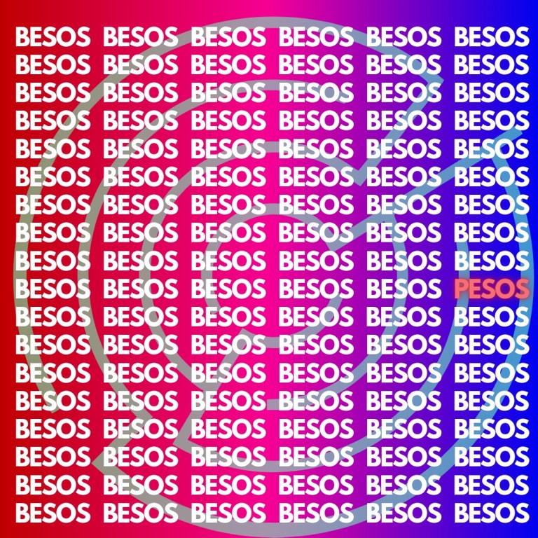 Si prestas atención, la palabra que predomina es “BESOS” pero una no coincide. Para ser más exactos, tendrás que buscar la palabra “PESOS” en solo 5 segundos. Así que, respira hondo, ¡y a jugar! Esta es la imagen que debes observar con detenimiento: