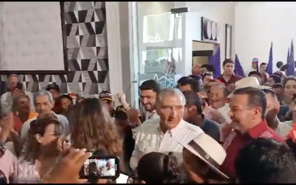 El funcionario federal fue recibido por los presentes con el grito de ¡Presidente!, ¡Presidente¡ Así como con tambores, matracas y cartulinas.