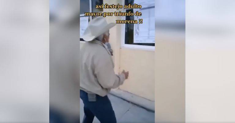 Adulto mayor celebra el triunfo de Menchaca cantando